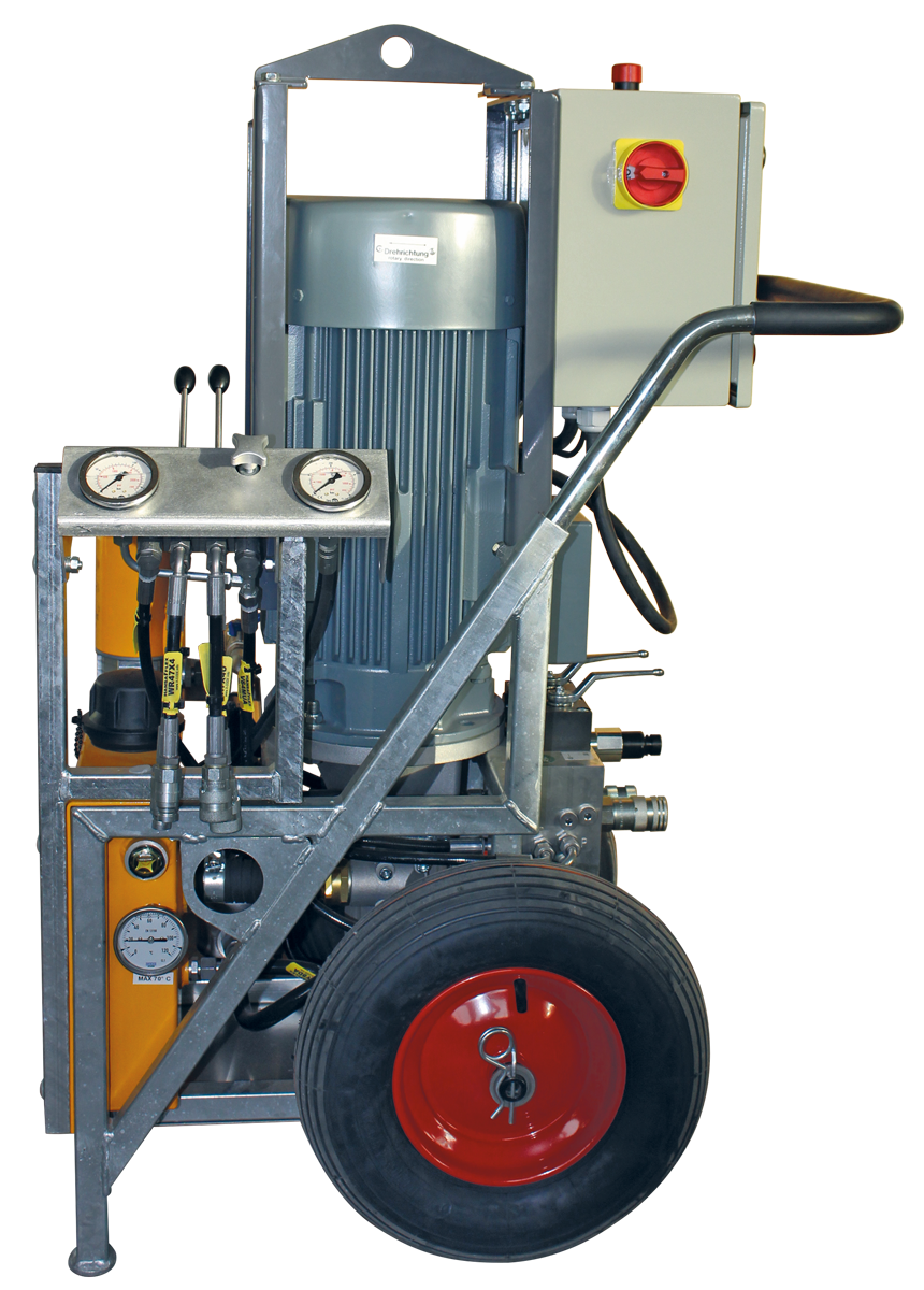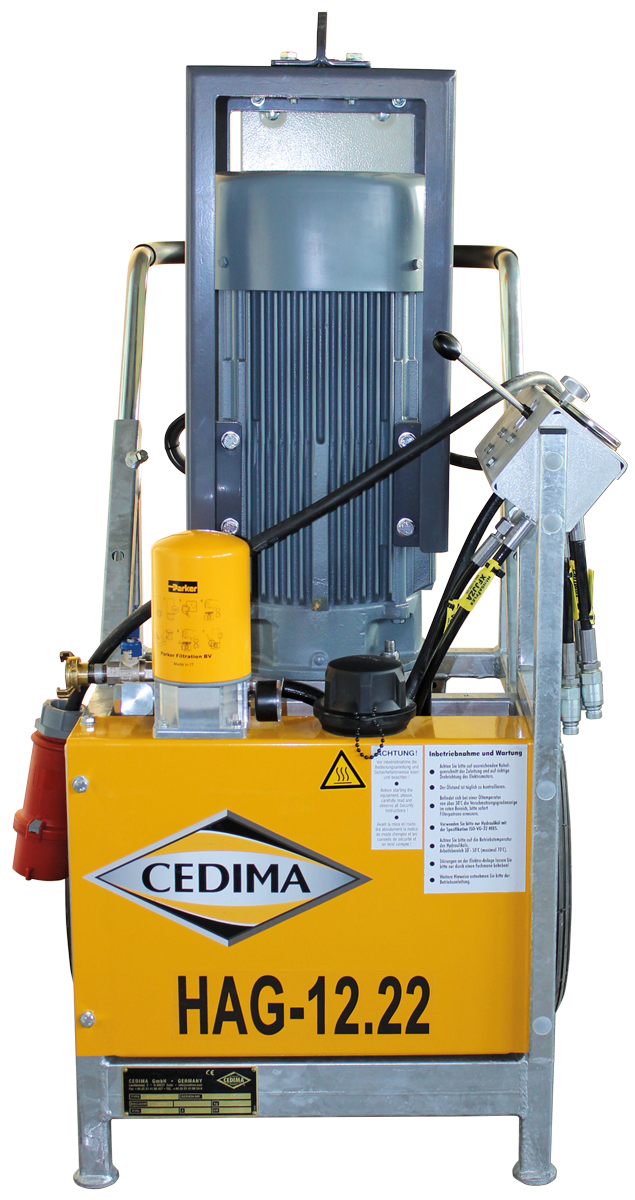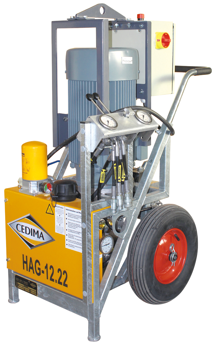 Das HAG-12.22 ist ein Hydraulikaggregat mit 3 parallel fördernden Zahnradpumpen und Steuerpult (Vorschubsteuerung)für den Betrieb von vollhydraulischen oder elektrohydraulischen Wand- oder Seilsagen. Ebenso einsetzbar für den Antrieb von hydraulischen Kernbohrgeräten.