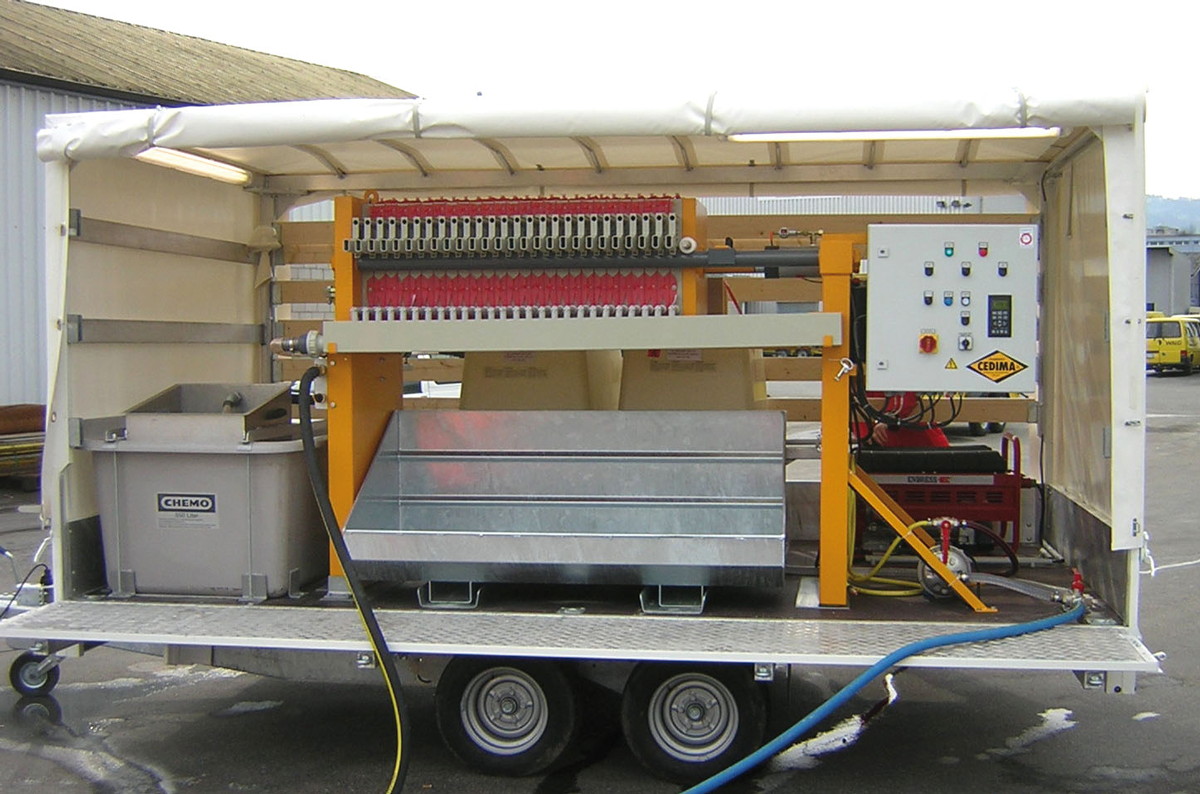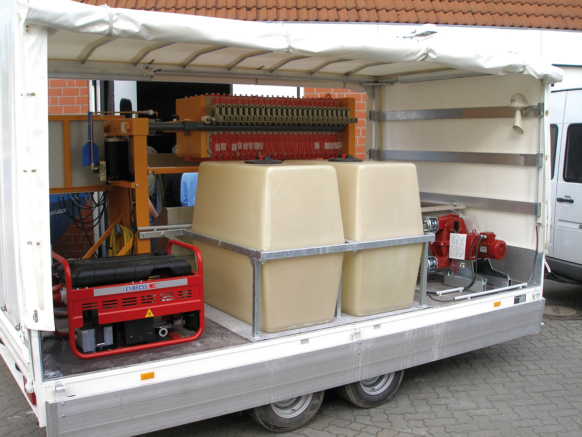- Aufbau der Anlage auf Tandem-Achsanhänger mit Straßenzulassung