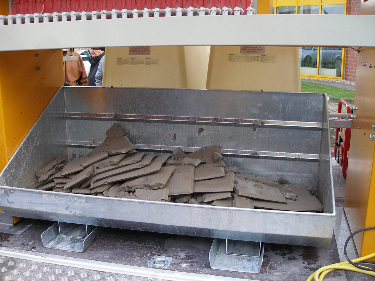 Die Schneidschlämme gelangen über die Absauganlage des Fugenschneiders zum Schlämmeseparator. Der mobile Betonschlämme-Separator CBS-1500 kann große Mengen Schneidschlämme aufnehmen. Feststoffe werden ausgefiltert und das Wasser kann dem Kreislauf (Schneidwasser Fugenschneider) wieder zugeführt werden. Die gesammelten Feststoffe können anschließend umweltgerecht entsorgt werden.