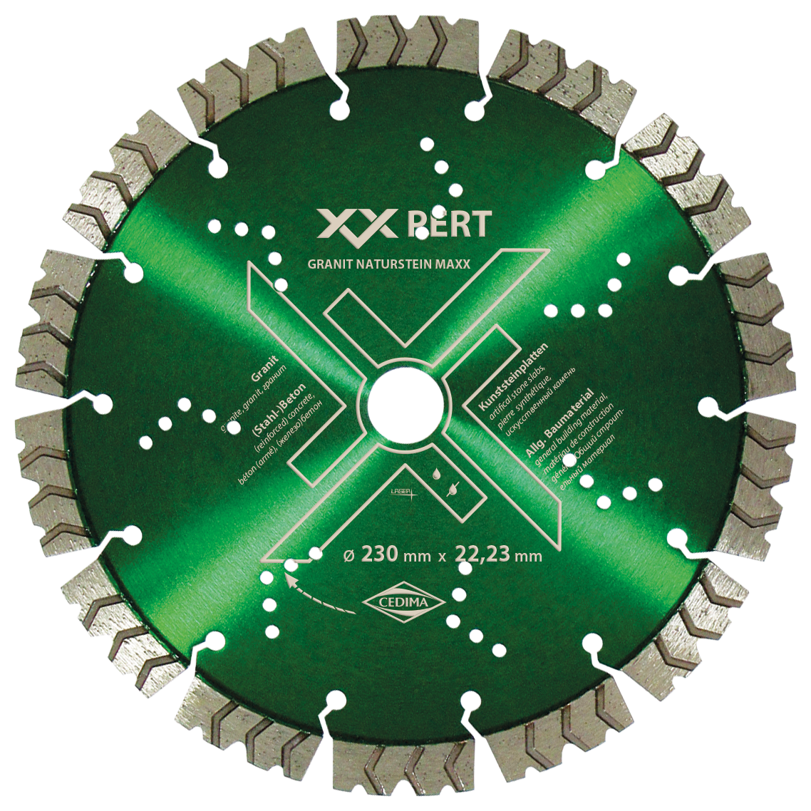 Lasergeschweißte, besonders hohe Diamant-Turbosegmente für lange Standzeiten und schnellen Schnitt kennzeichnen diese Trennscheibe. Die vielfältigen Einsatzmöglichkeiten machen diese Trennscheibe zum universellen Werkzeug für Natursteinverarbeiter oder den GaLa-Bau.