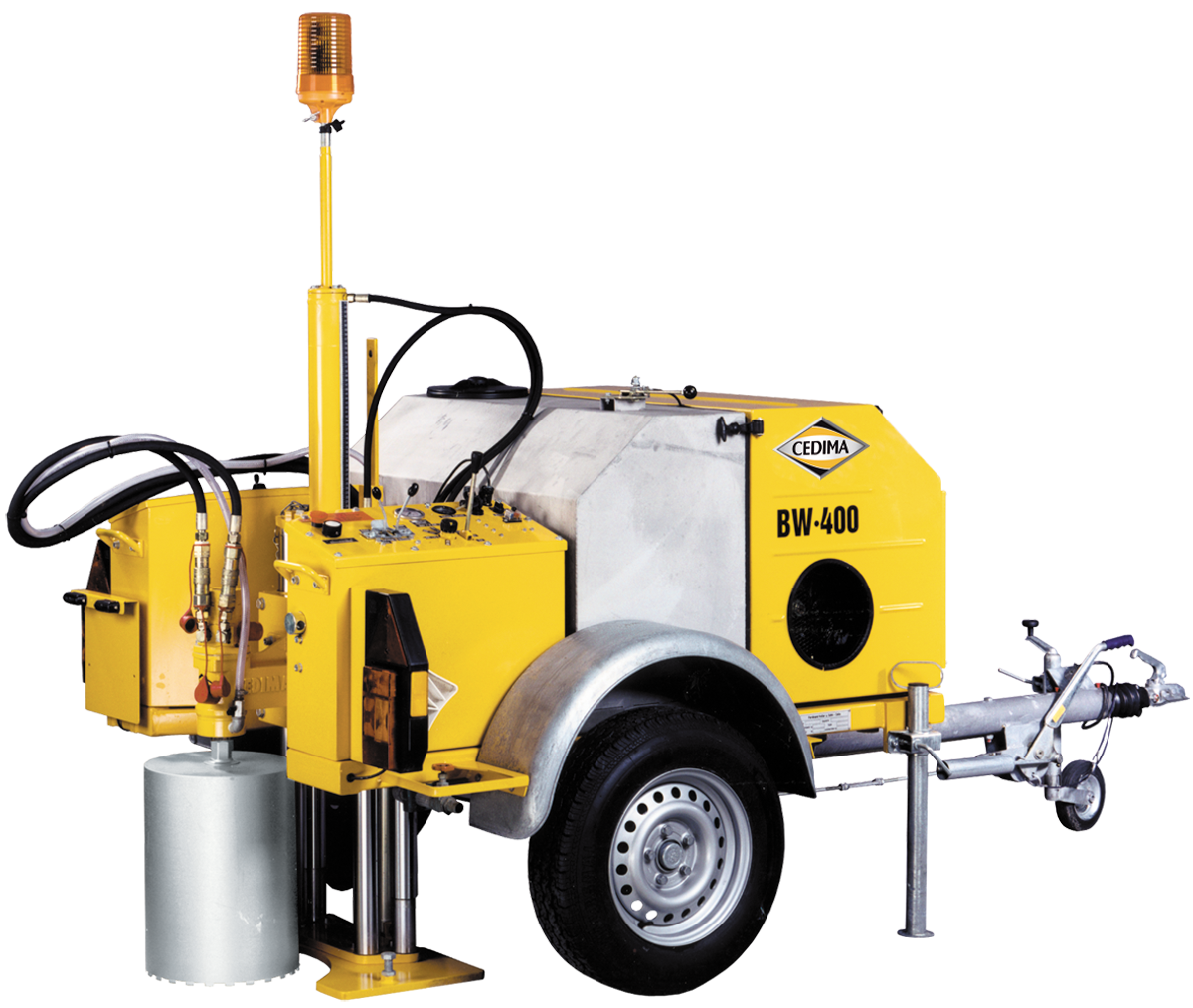 The fully hydraulic BW-400 is particularly suitable for removing test cores from asphalt or concrete pavements. At airfields, the drilling rig is used for the production of step boreholes for the underfloor firing of the runways. With the BW-400 H, you can drill independently of any supply line.