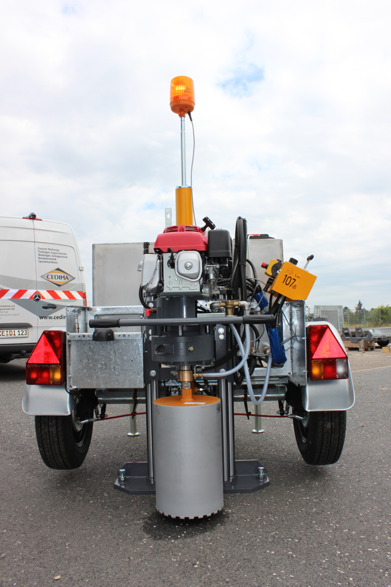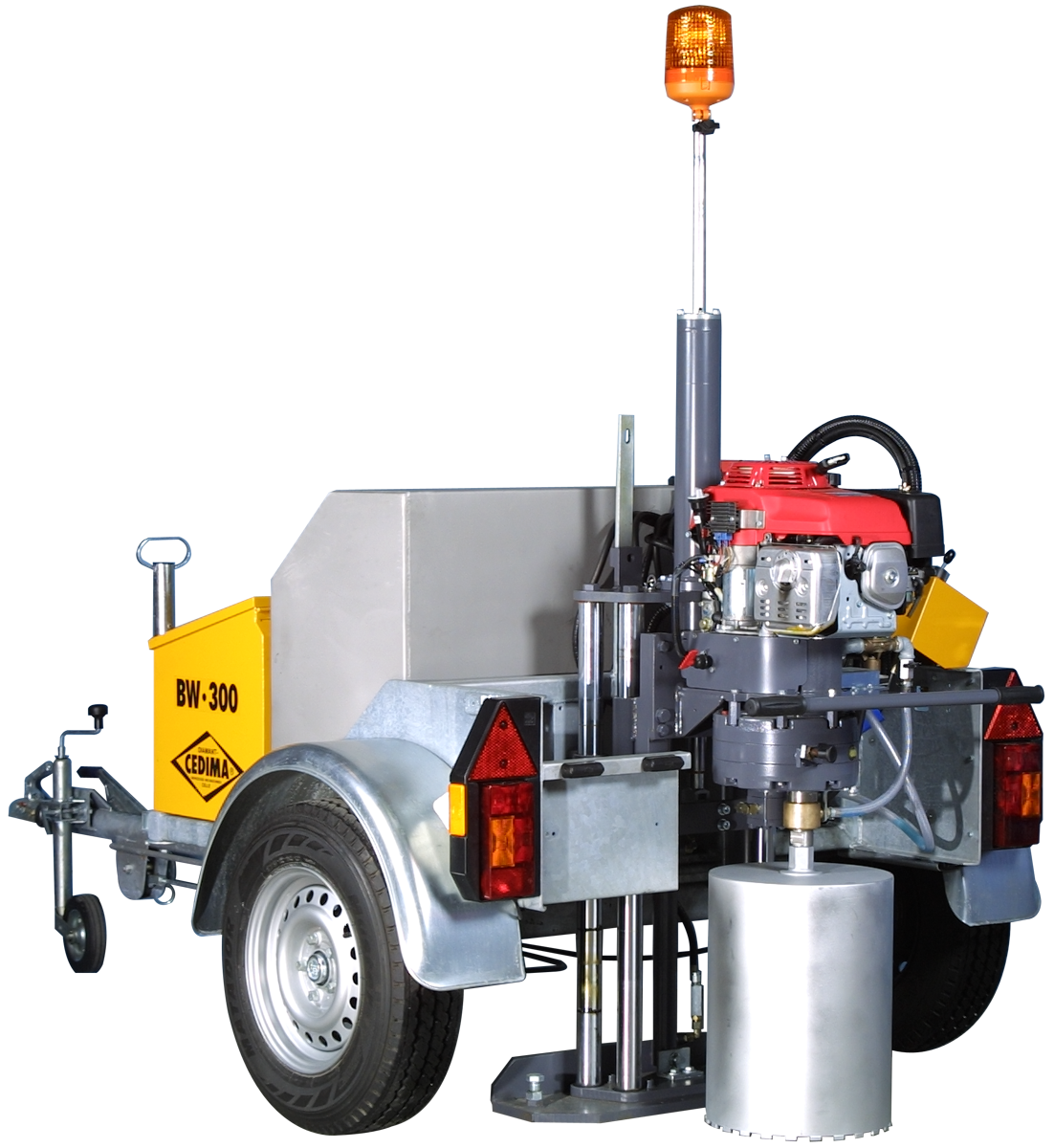 The BW-300 is particularly suitable for removing test cores from asphalt or concrete pavements. At airfields, the drilling rig is used to drill holes for underfloor lighting of runways. With the BW-300, you can drill independently of any supply line.