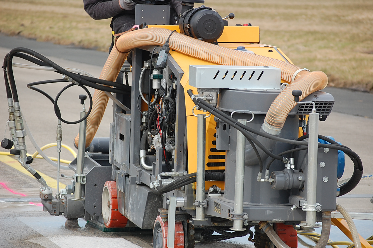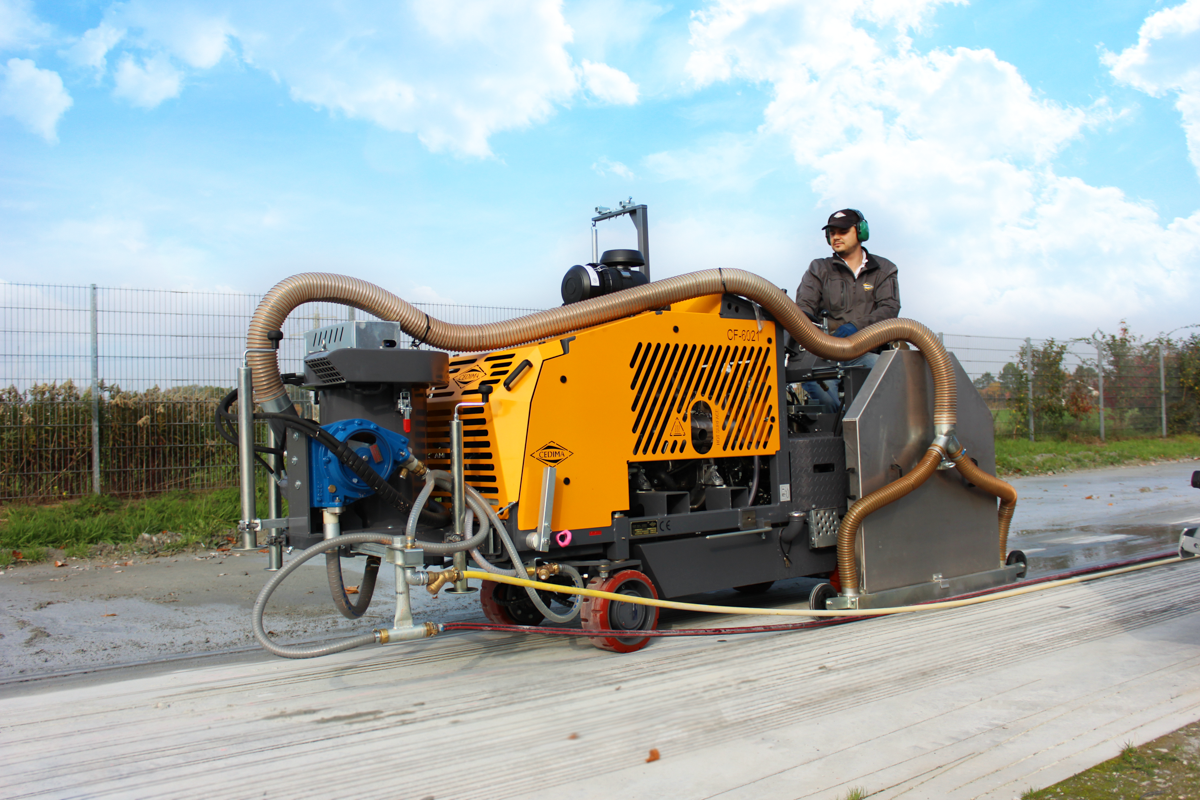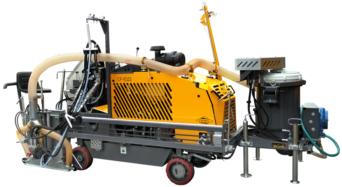 Hydraulic extraction system type 5.5 for collecting the cutting sludge from floor saws type CF-6022 and CF-60321 with corresponding suction blade guards. The drive is provided by the connections of the auxiliary hydraulics on the floor saw.