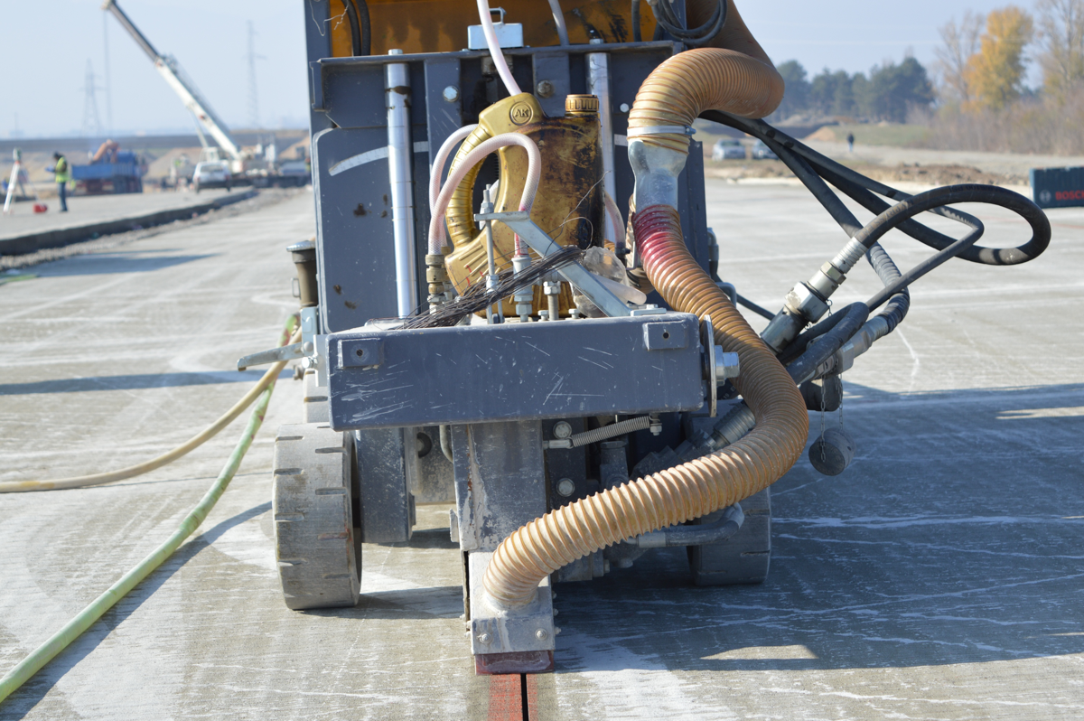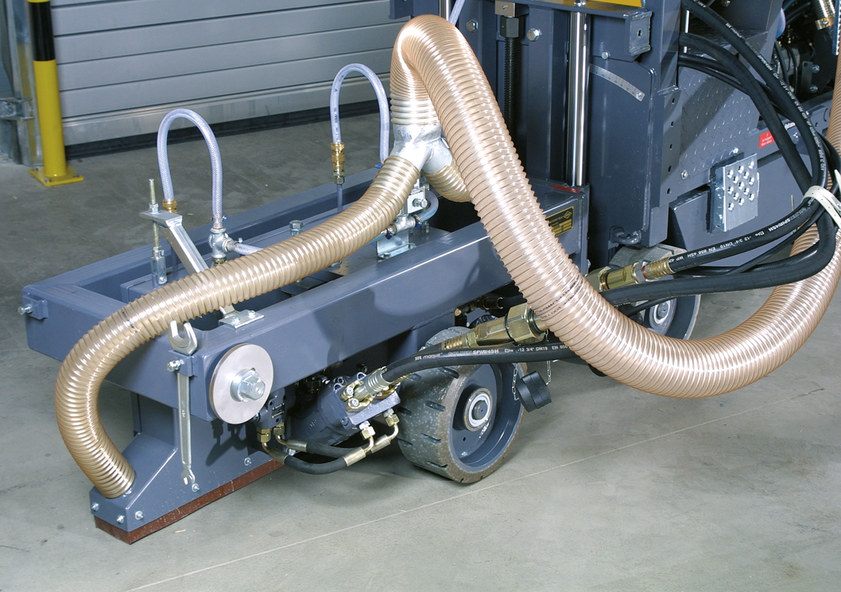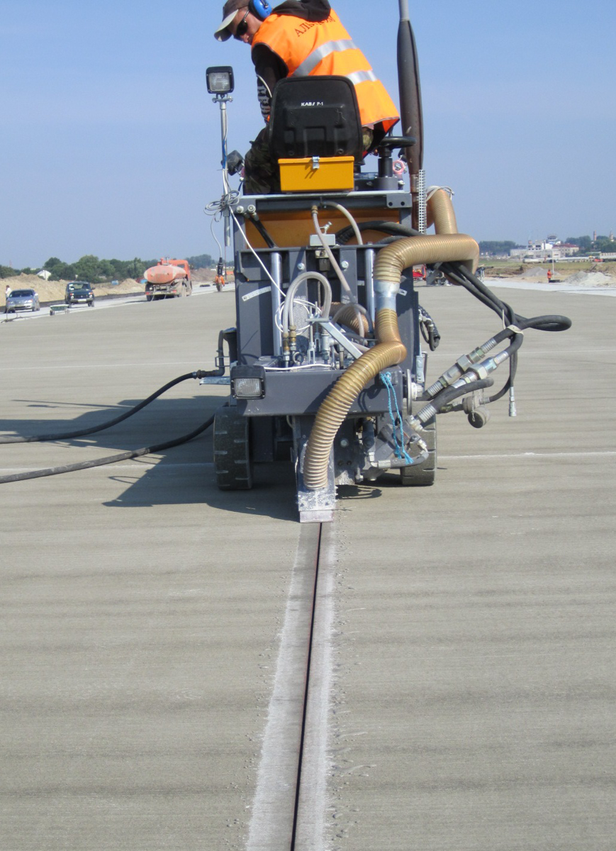 Longitudinal section attachment kit LS-2 with 2 cutting shafts arranged one behind the other and with suction blade guard for connection to the extraction system type 6.3 on the CF-6032. The ideal equipment for cutting the central longitudinal joints of roadways or runways in just one operation.